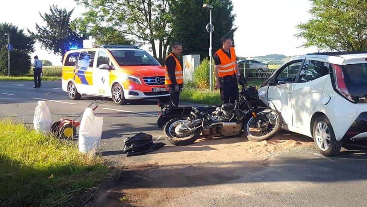Die Löhnerin nahm den herannahenden Motorradfahrer nicht wahr, sodass die Fahrzeuge zusammenstießen. Infolge dessen stürzte der 57-jährige Mann und verletze sich leicht. Die Fahrerin des weißen Toyota Aygo erlitt ebenfalls leichte Verletzungen.