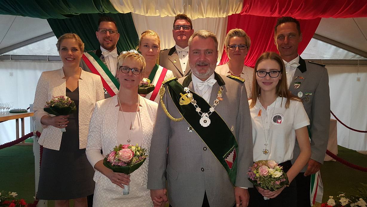 Familiär war es wie traditionell auch beim 1. Ritterpaar (Maik und Bianca Hohmann) und beim 2. Ritterpaar (Tobias und Janine Wiebesiek), neben Sina Will wurde Daniel Kespohl zum Adjutanten ausgerufen. Die Feierlichkeiten im Festzelt und dem dortigen Festplatz mit Hochstand am Drosselhain hatten um 16.30 Uhr begonnen, Bürgermeister Bernd Poggemöller (SPD) gab wie üblich den ersten Schuss ab.