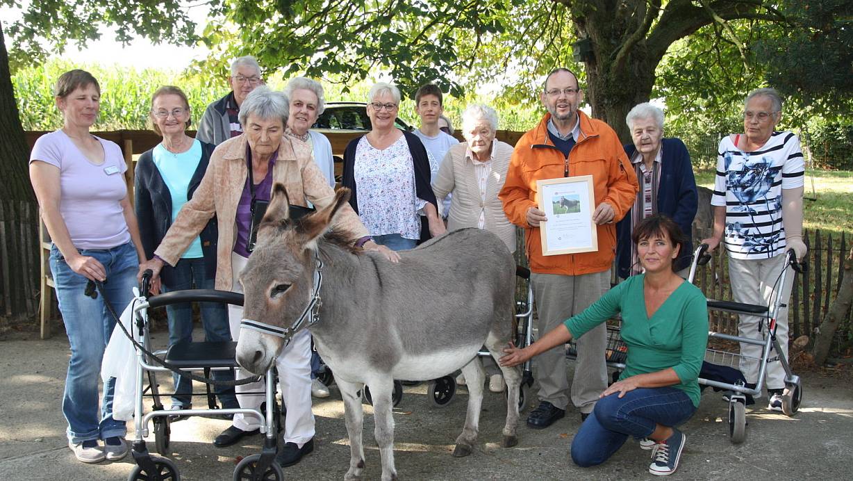 Die Bewohner des Altenwohnheims sind nicht die ersten, die eine Patenschaft für ein Tier auf dem Lebenshof der Familie Bartelheimer übernehmen. Oft seien es Einzelpersonen oder Paare, aber auch eine Kindergartengruppe habe schon einen Esel unter ihre Fittiche genommen. "Die Leute haben immer einen netten Platz, wo sie hinkönnen", sagt Stephanie Bartelheimer.