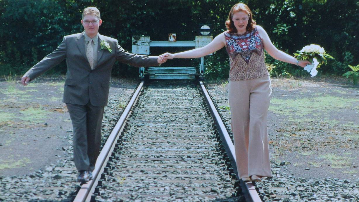 2003 haben die Henningsmeyers geheiratet. Eigentlich wollten sie die Fotos an der Ulenburg machen, doch ihr Trauzeuge schlug das verlassene Bahngelände vor. | © Alexander Möhle