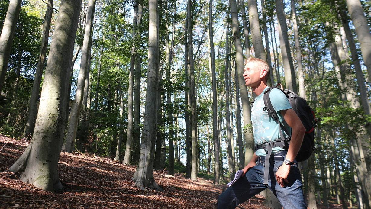 Ralf König im Buchenwald Löhne am Eggeweg. "Den Himmel dürfte man hier eigentlich nicht sehen." Und Sonnenstrahlen dürfte er auch nicht abbekommen. | © Susanne Barth