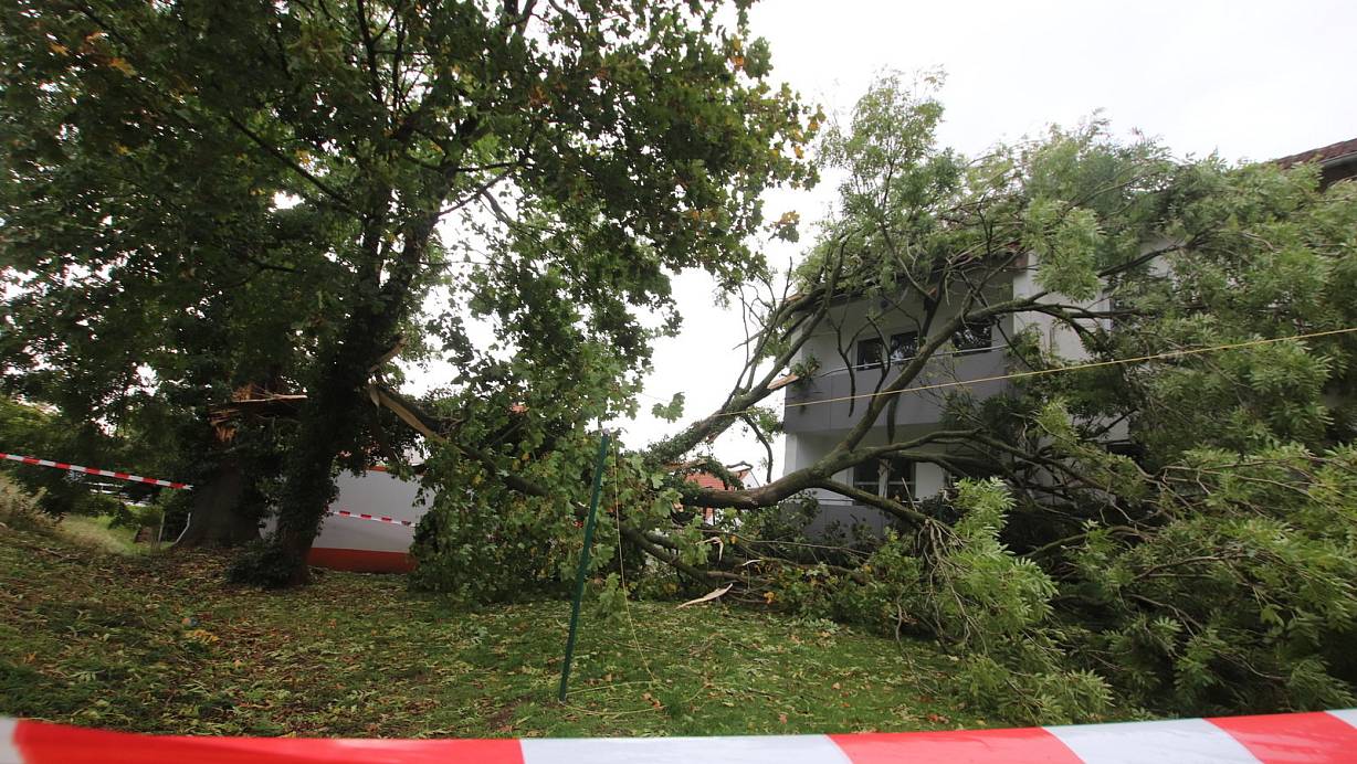 Ein Gewittersturm hat Freitagmittag mehrere Bäume umgeworfen. Zwei stürzten in Häuser, einer auf die Straße. Eine Anwohnerin entging knapp fallenden Dachziegeln.