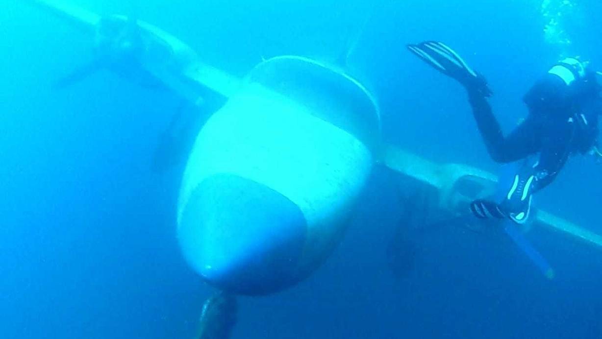 Auch die Überbleibsel der Förderanlagen des Kreideabbaus, neuere Spots wie ein im Wasser schwebendes zweimotoriges Propellerflugzeug, ein chinesisches Holztor und auch ein aus Kunststoff modellierter etwa drei Meter langer Hai waren sehr gut zu betauchen.