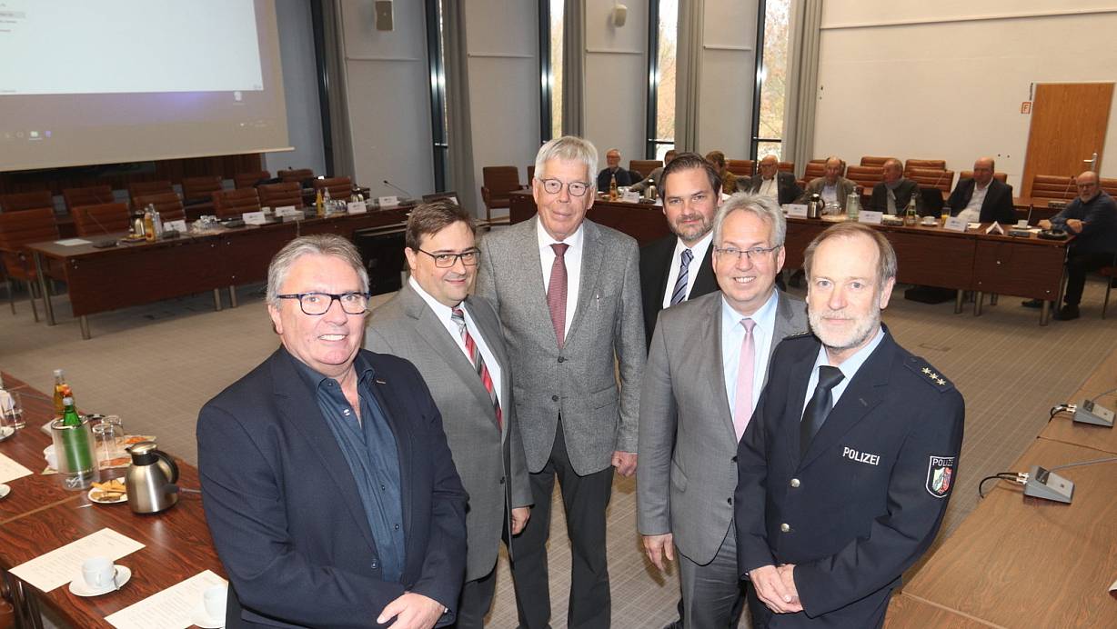 Der Polizeirat tagte im Rathaus: Wolfgang Greinke (v. l.), Marcus Tarrach, Hartmut Golücke, Peter Lehmann, Jürgen Müller und Dirk Zühlke. | © Ulf Hanke