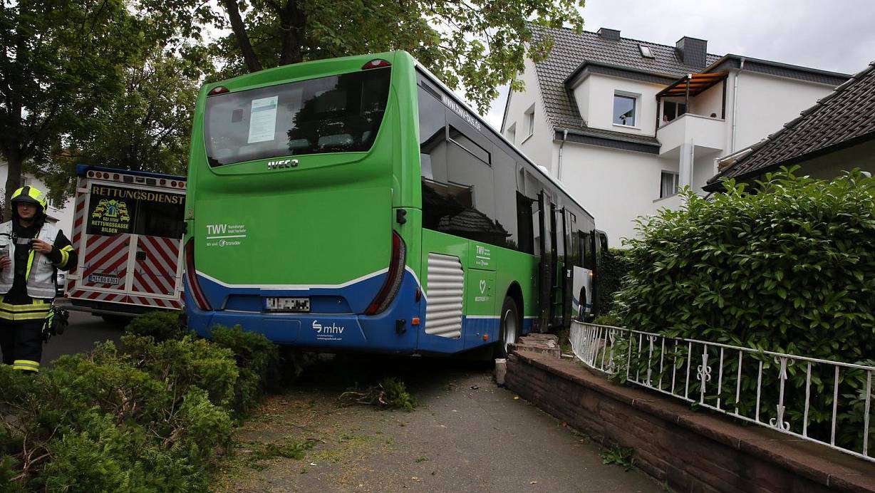 Durch eine Mauer hindurh hat sich der Omnibus in einen Vorgarten an der Wielandstraße manövriert. | © Elke Niedringhaus-Haasper