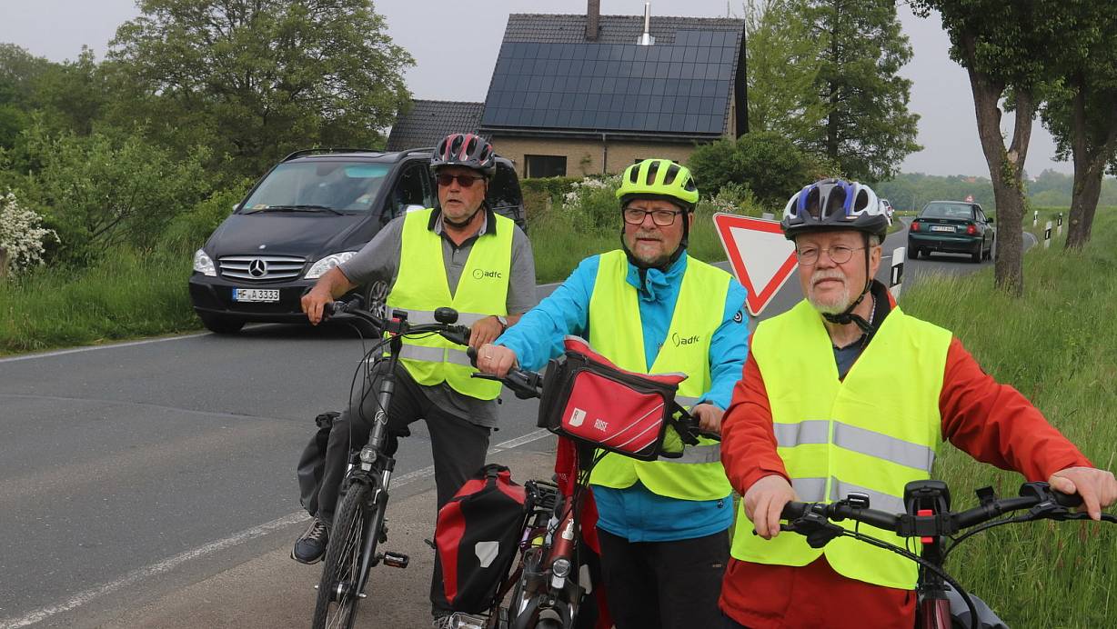 Hier endet der Radweg: Helmut Stickdorn (v.l.), Ulrich Flachmann und Jürgen Wehmeier vom ADFC stehen an der Häger Straße. | © Dirk Windmöller