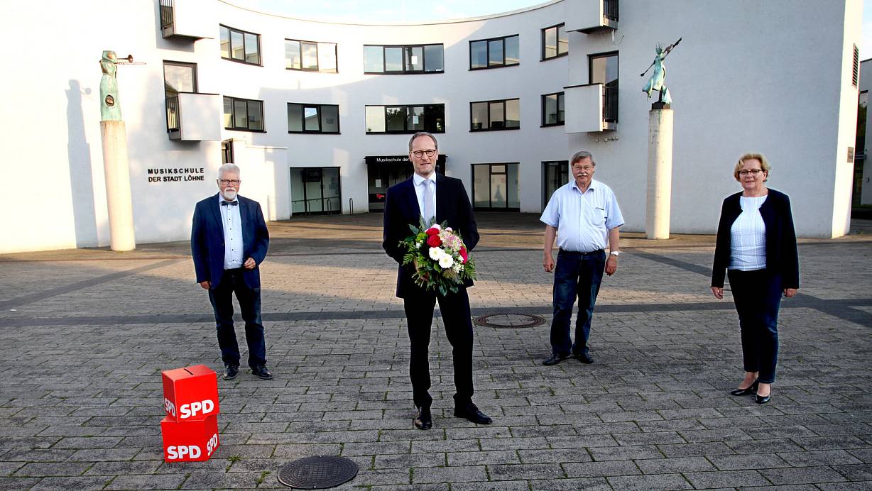 Spitzenkandidat Wolfgang Böhm, Bürgermeisterkandidat Bernd Poggemöller, Parteichef Egon Schewe und der Landtagsabgeordneten Angela Lück geht die SPD in die Kommunalwahl in Löhne. | © Felix Eisele
