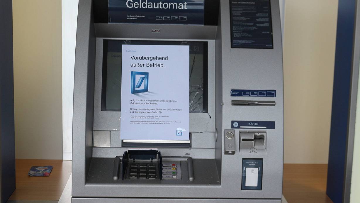 Vandalismus am Geldautomat der Deutschen Bank an der Alten Bünder Straße in Löhne. | © Susanne Barth