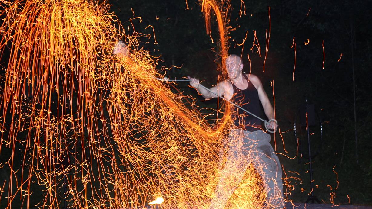 Beeindruckende Tricks und Jonglage mit dem heißen Element