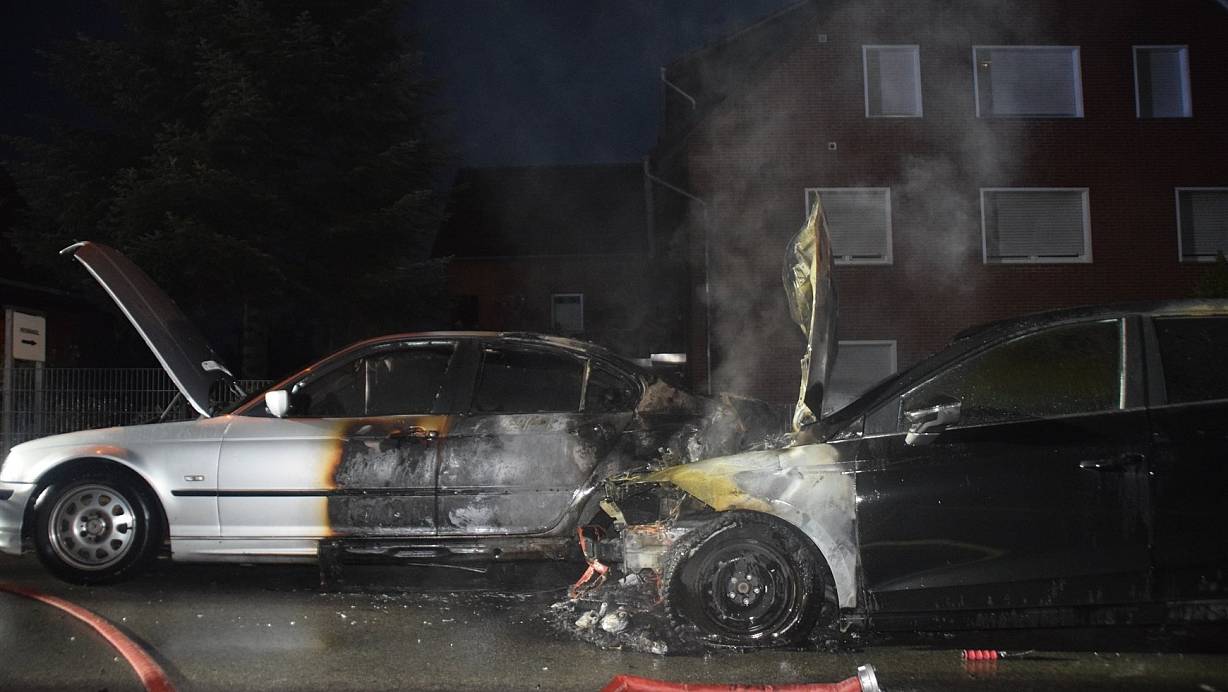Laut Polizei soll ein 20-jähriger Mann aus Bad Oeynhausen gegen 5.45 Uhr mit seinem Seat in Fahrtrichtung Oeynhausener Straße unterwegs gewesen sein. Er übersah offenbar den am Fahrbahnrand geparkten BMW eines Anwohners und knallte mit dem Fahrzeug zusammen. Aus bisher nicht geklärten Gründen fing der Seat nach dem Zusammenstoß Feuer. Die Flammen wüteten so stark, dass sie auf den BMW übergingen und sich vom Heck bis zur Fahrertür ausbreiteten.
