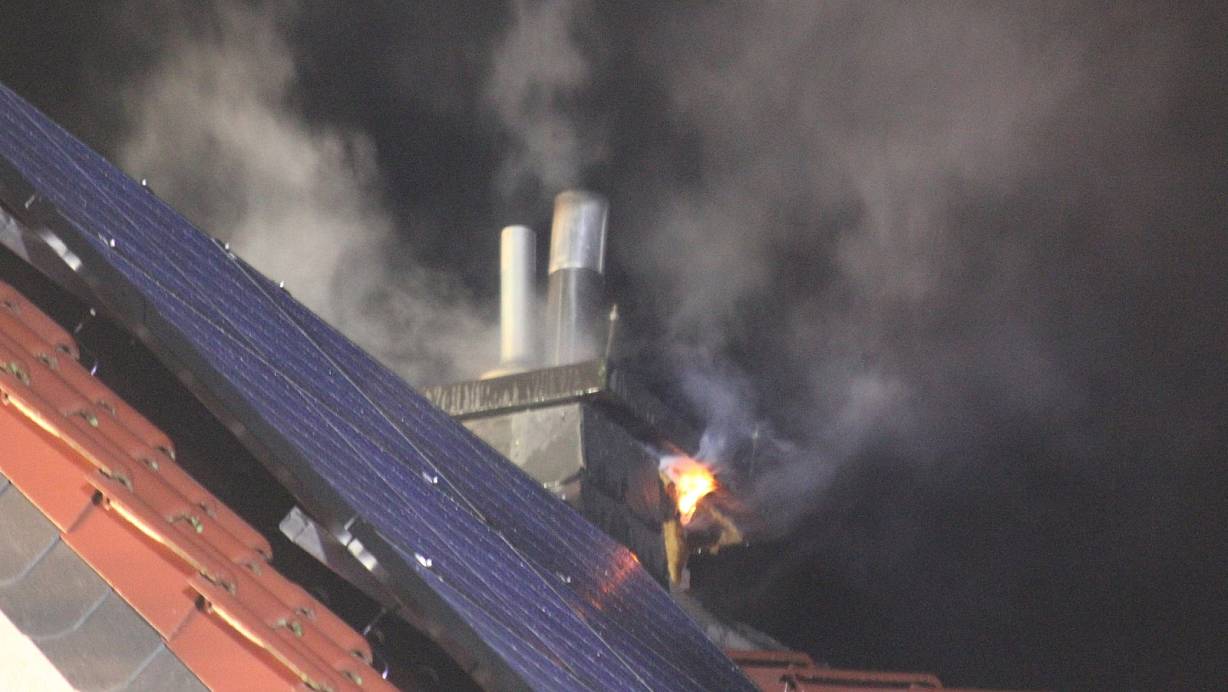 Bei dem Feuer am Samstagabend ist ein Wohnhaus schwer beschädigt worden. Nachbarn hatten Flammen am Schornstein entdeckt und die Feuerwehr gerufen.