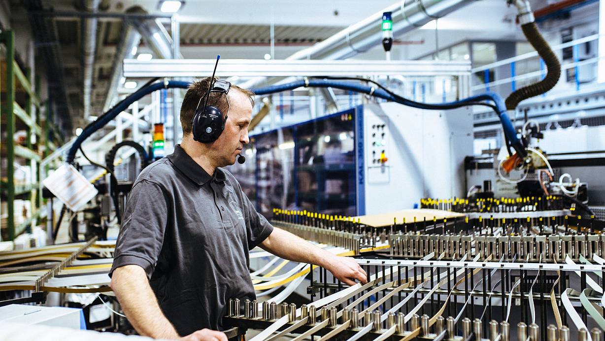 Ein Mitarbeiter von Burger-Küchen in der Produktion. Von dort könnte Solarstrom nach Löhne geliefert werden. | © Sam Rey