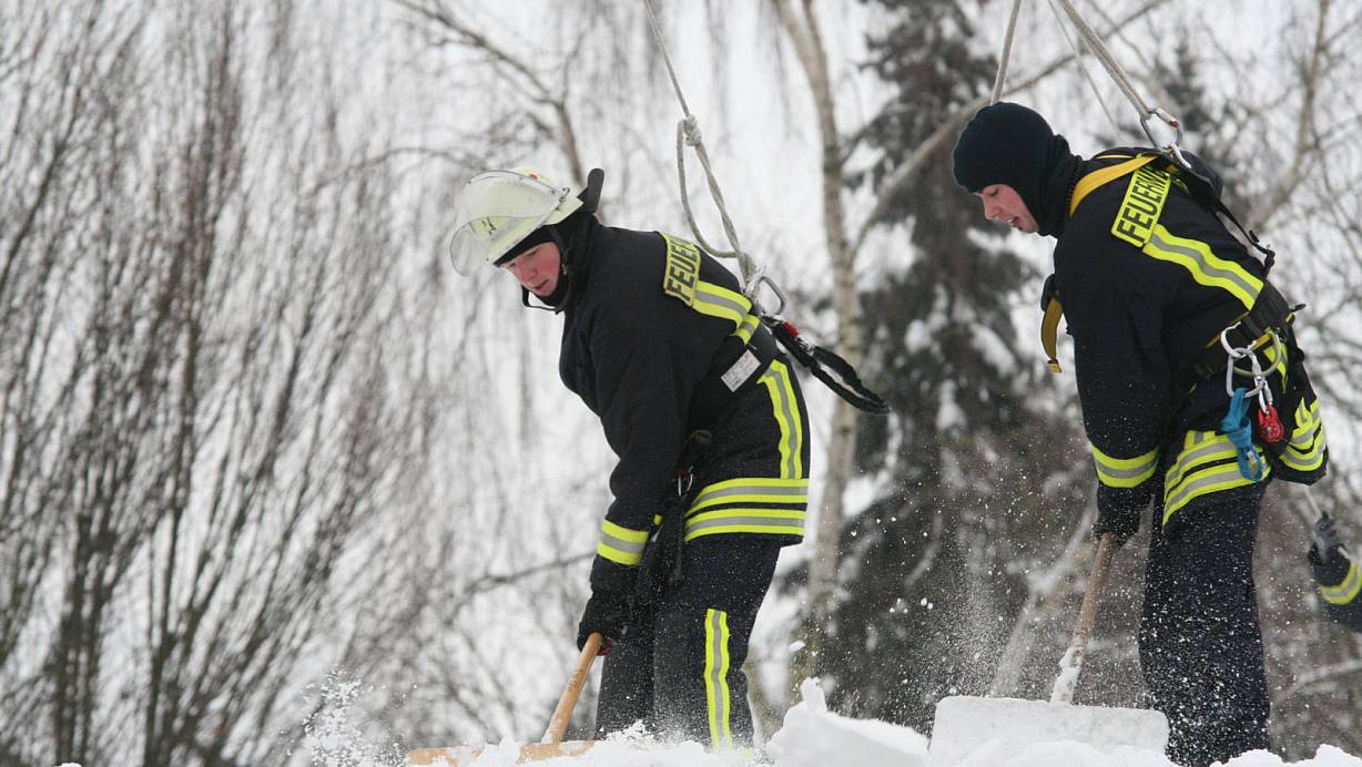 Die Freiwillige Feuerwehr schippt 2010 Schnee auf dem großen Hallendach von HB Drucke. Zu einem solchen Einsatz würde es heute nicht mehr kommen. | © Ulf Hanke