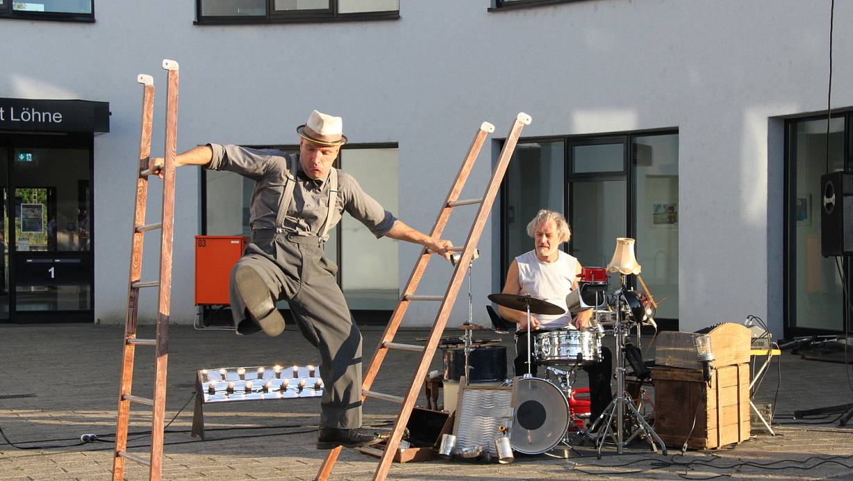 Der Belgier Danie Jordans begeisterte 2019 bei der Auftaktveranstaltung der Straßentheater-Reihe "Von Nord nach West" mit seinem pantomimischen Können und akrobatischen Einlagen. | © stoebing