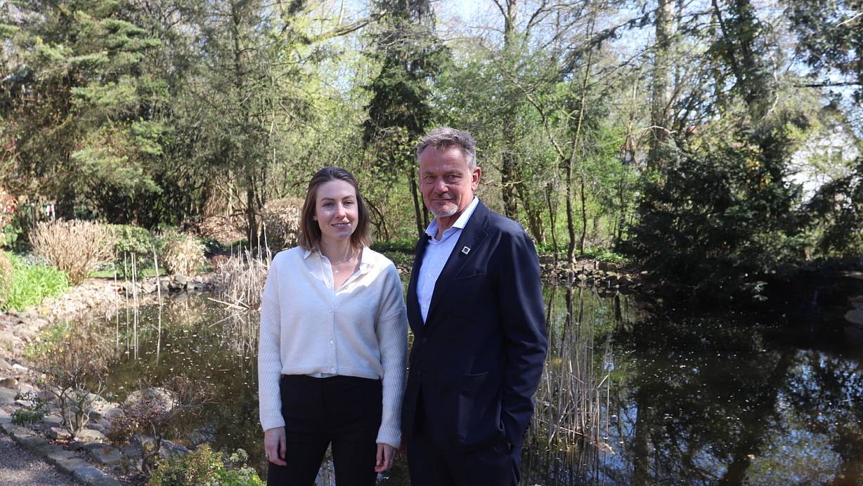 Delf Baumann mit seiner Tochter Johanna im Garten von Haus Beck. | © Dirk Windmöller