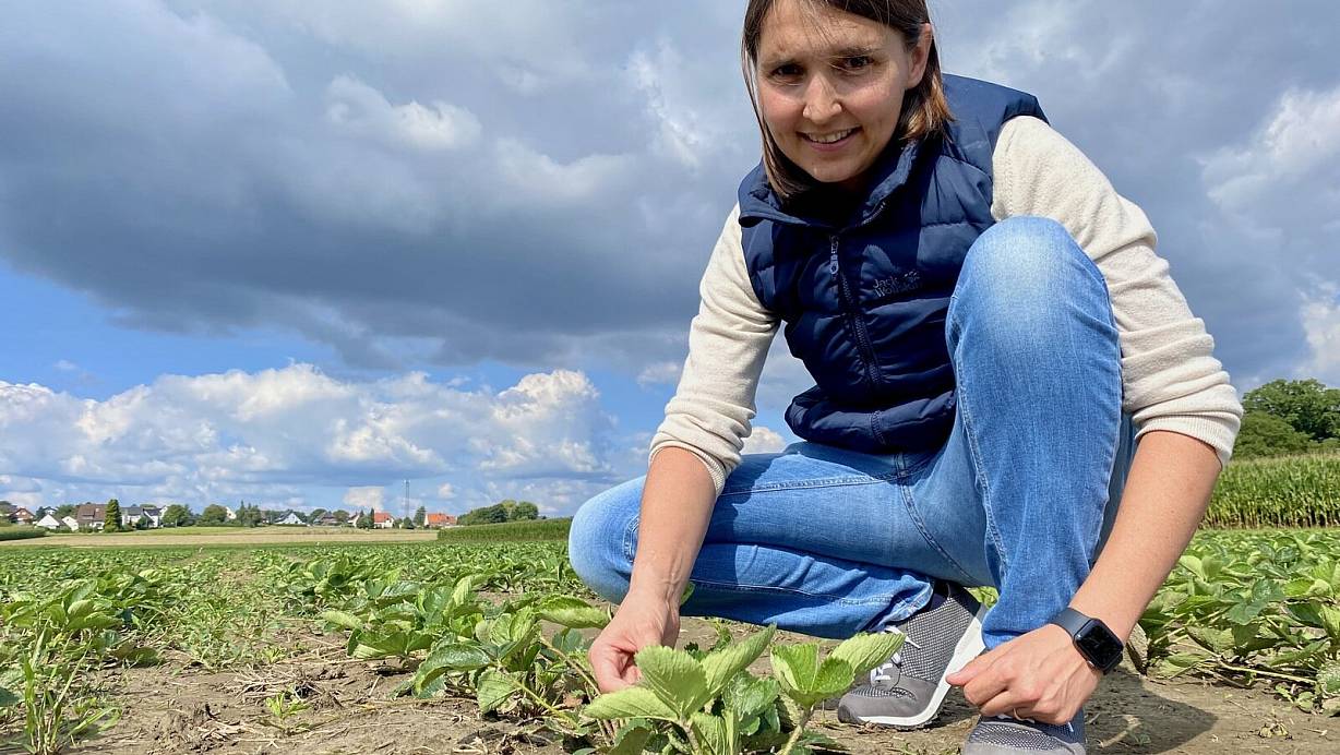 12 Kilometer Wasserweg pro Feld gegen die Trockenheit, 15.000 Quadratmeter Vlies gegen den Frost: Auf den Ulenburger Erdbeerfeldern muss Katharina Eßer gegen immer extremere Wetterverhältniss gegenhalten.