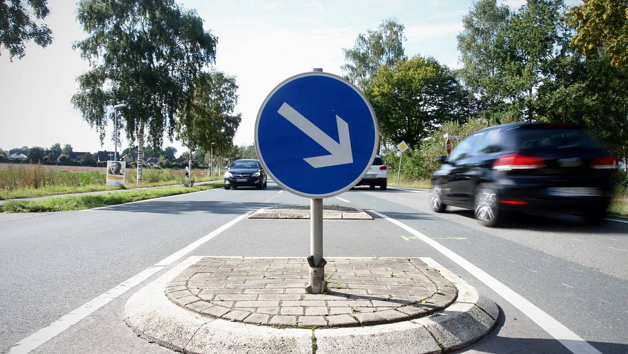Die Mittelinsel ist an der Ellerbuscher Straße ist zwar als Querungshilfe gedacht. Dennoch haben Radfahrer es hier schwer. | © Felix Eisele