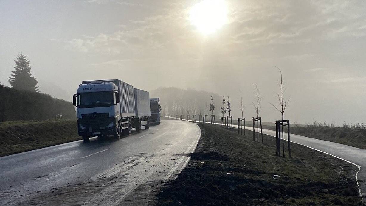 Lkw-Unfall auf der B611: Anrufer soll vor glatter Straße gewarnt haben
