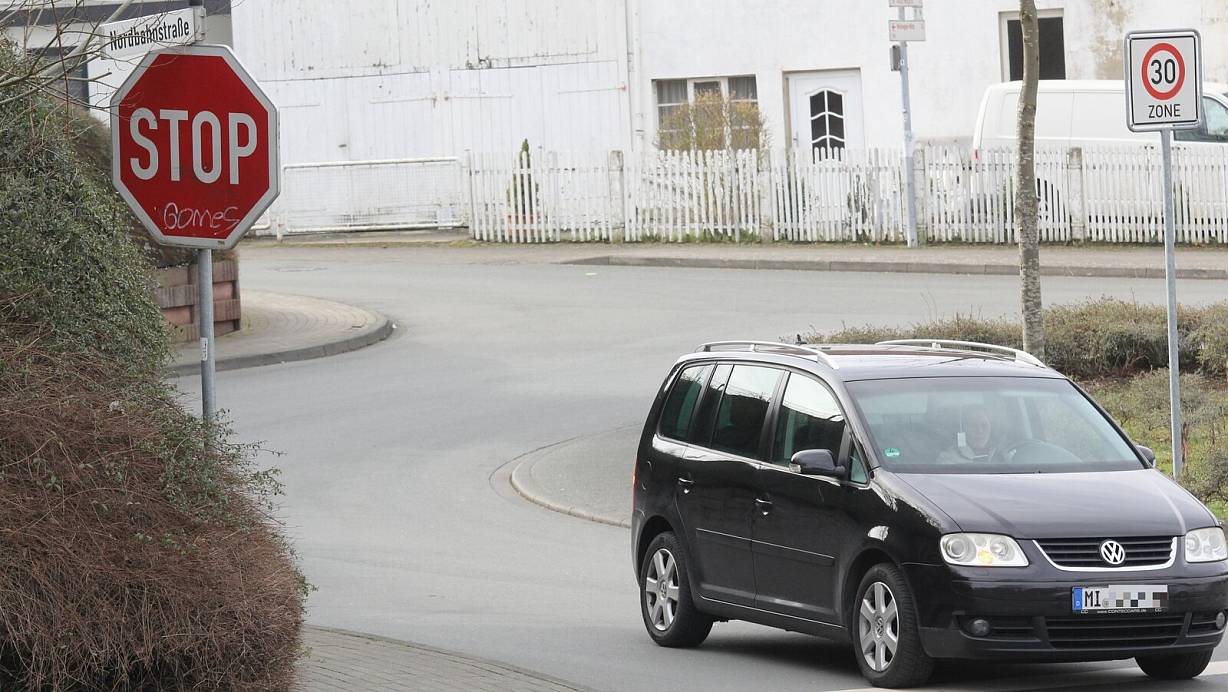 Das Stoppschild an der Nordbahnstraße, Ecke Lange Straße zeigt seit Sturmtief Zeynep in die falsche Richtung. | © Ulf Hanke