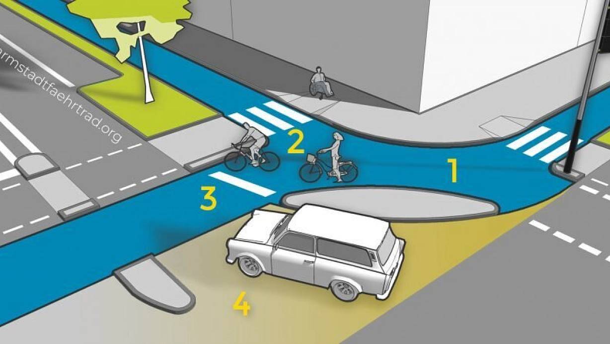 Diese Grafik könnte nach Überzeugung des ADFC als Vorbild für die Umgestaltung de Becker Kreuzes gelten. | © darmstadtfaehrtrad.org