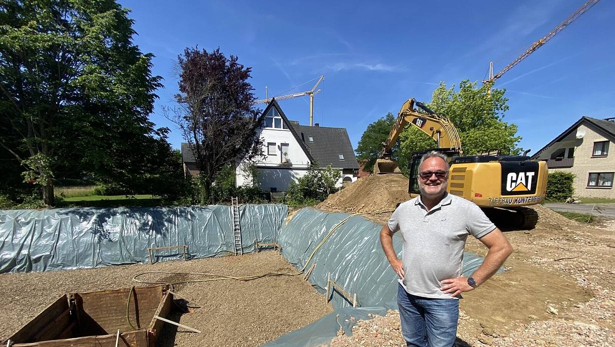 Olaf Schweneker an der Baugrube des Mehrfamilienhauses am Kantor-Lohmann-Weg. | © Dirk Windmöller