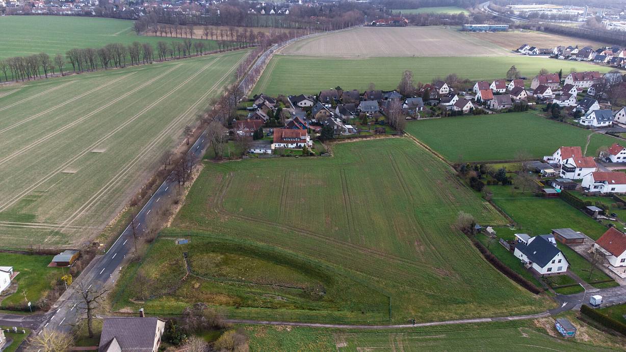 Hier sollen 19 Wohnhäuser entstehen. Links ist die Ellerbuscher Straße zu sehen, am rechten untern Bildrand das Ende der Nordbreite, über die das Wohngebiet erschlossen werden soll. | © Wolfhard Jording