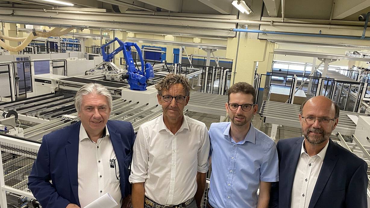 Axel Maek (v.l.), Joachim Fischer (Fertigungsleiter), Timo Gubbels und Michael Kersting freuen sich über die gelungene Umstellung der Produktion. | © Dirk Windmöller
