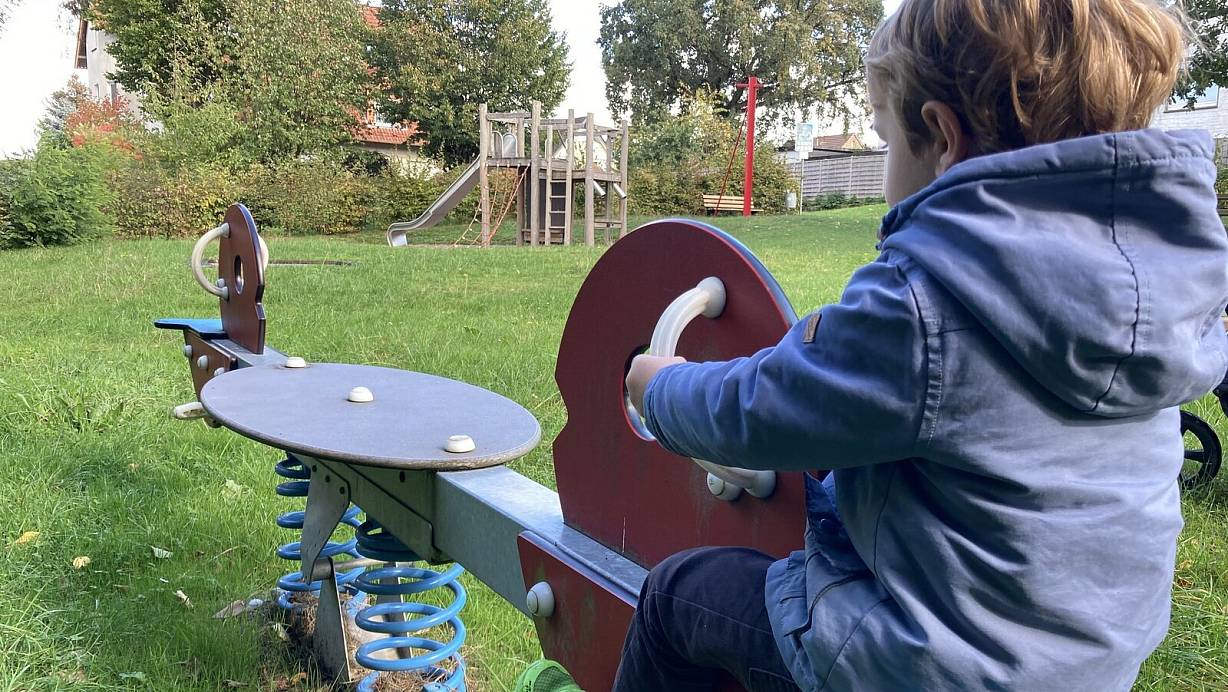 Auf dem Spielplatz Baxwittel gibt e viel Platz und reichlich Spielgeräte. Zumindest für die Wippe aber braucht es einen Spielkameraden. | © Felix Eisele
