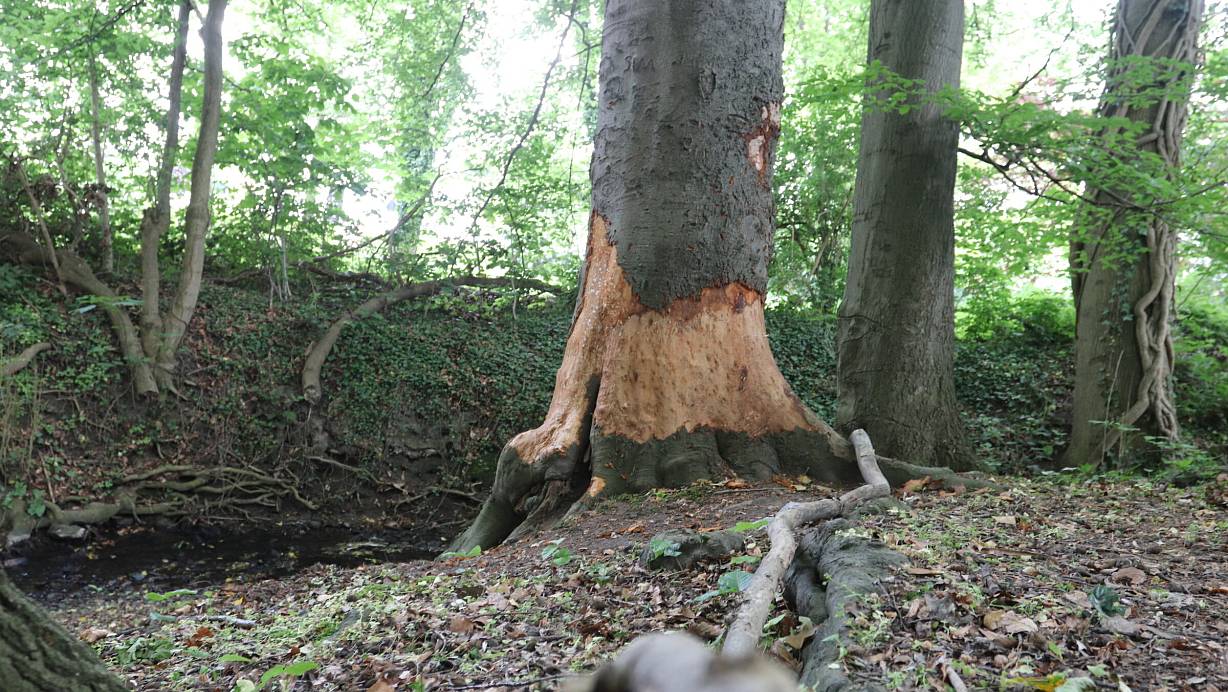 Löhne. In einem städtischen Waldstück an der Straße „Zum Flachsland“ haben Unbekannte die Rinde einer mehr als 40 Jahre alten Buche rund um den Stamm entfernt. Aufgefallen ist der Schaden am Wochenende vom 13. bis 14. Mai.