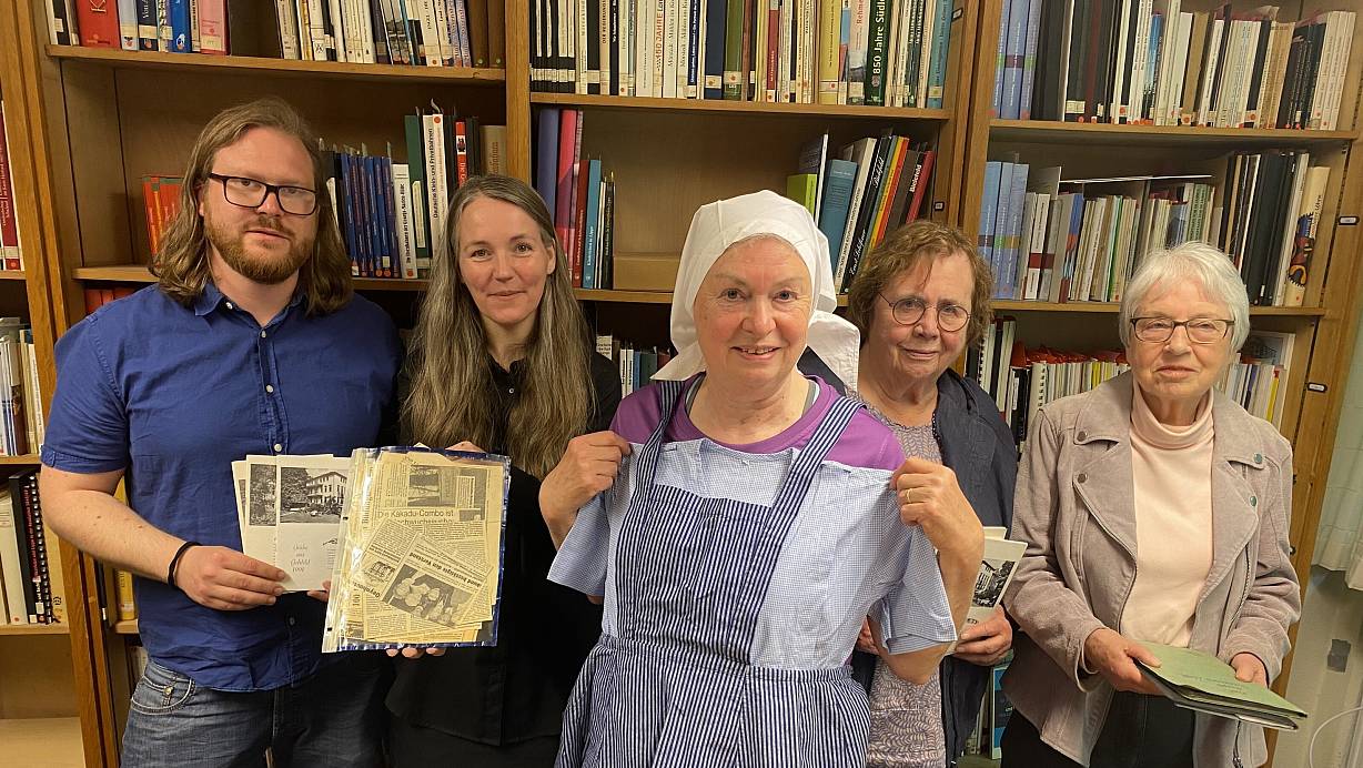 Mathis Nolte, Sonja Voss, Rosemarie Steinmeier, Barbara Hänsch und Edith Meyer sammeln Erinnerungen zur Puddingschule. | © Dirk Windmöller