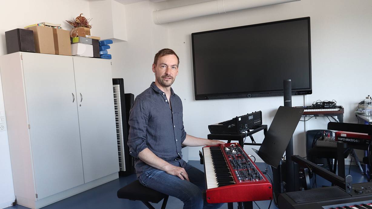 Björn Bockfeld im Unterrichtsraum am Keyboard. | © Judith Gladow