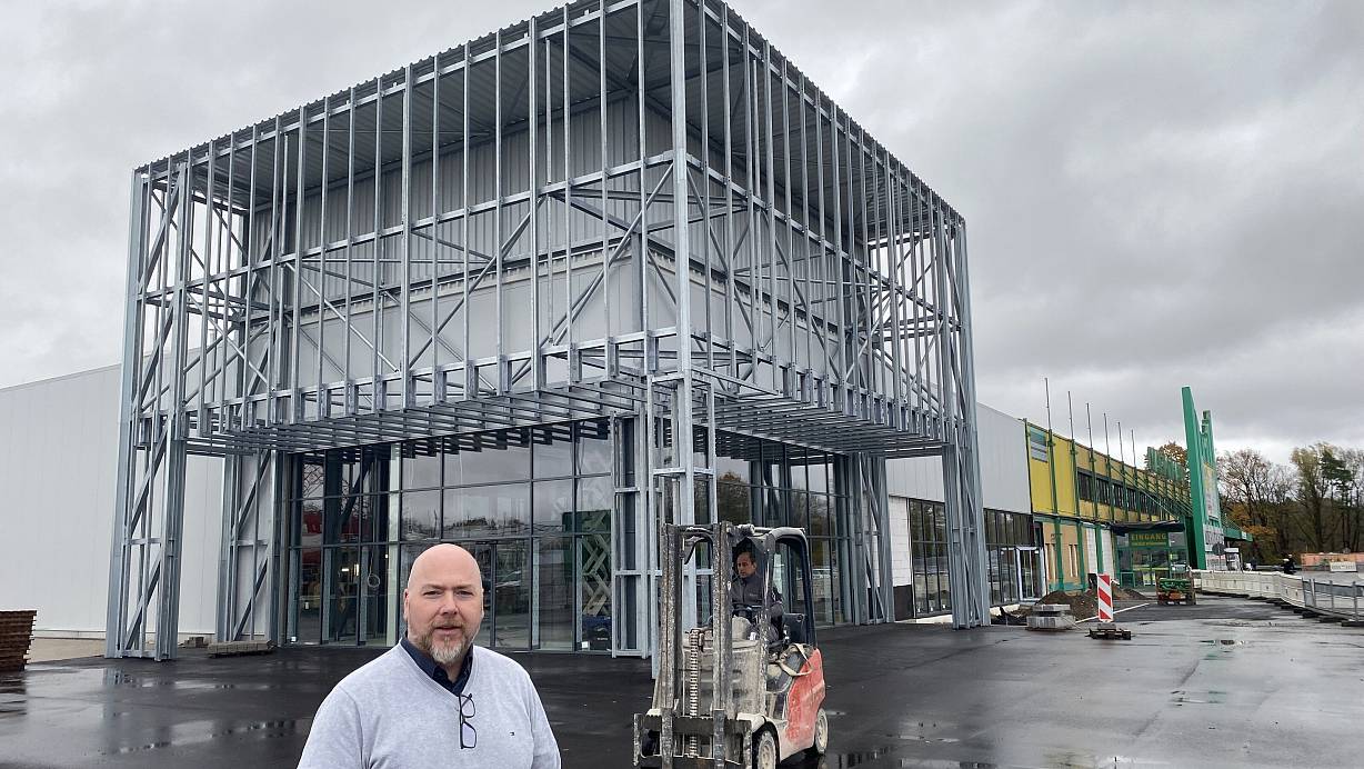Marktleiter Jens Peschke steht vor dem künftigen Haupteingang des Gebäudes. | © Dirk Windmöller