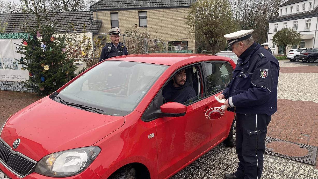 NW-Redakteur Felix Eisele wird von Hauptkommissar Sascha Brandt kontrolliert. Im Hintergrund steht Hauptkommissar Stefan Göding. | © Dirk Windmöller