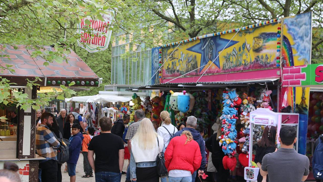 Beim Bürgerfest im Parkgelände zwischen Löhne und Bad Oeynhausen locken Fressbuden, ein Spielangebot und die Party zahlreiche Besucherinnen und Besucher an.