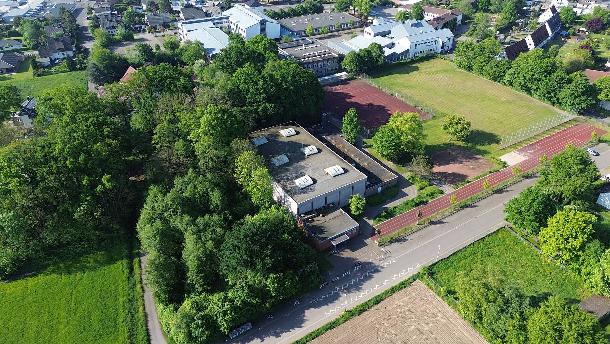 Die Sporthalle an der Bertolt-Brecht-Gesamtschule in Mennighüffen ist in die Jahre gekommen. Derzeit berät die Politik, ob eine Sanierung noch sinnvoll ist. Alternativ wäre ein Neubau auf dem Sportgelände direkt nebenan denkbar. | © Wolfhard Jording