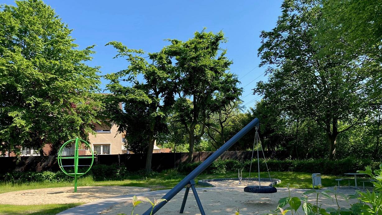 Die hat nun stattgefunden. Der Spielplatz Holtkamp, heißt es in der Mitteilung der Stadt, sei nun im wahrsten Sinne des Wortes eine „runde Sache“. Denn: „Das Thema ,rund’ findet sich an vielen Stellen auf dem Spielplatz wieder.“ Die Ausstattung des Spielplatzes umfasst einen zentralen Tarzanschwinger (große Schaukel), ein rundes Trampolin, ein Karussell, einen Kletter-Globus, einen Sandkasten mit Sandbagger und eine runde Picknickgarnitur. Durch eine durchgängige Wegeführung könnten die Spielgeräte auch barrierearm erreicht werden, schreibt die Stadt.