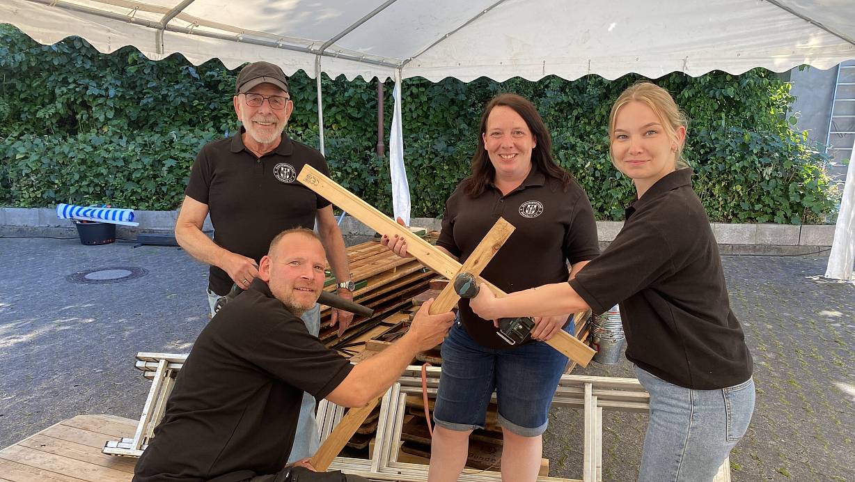 Hans-Walter (v. l.) und Björn Holthaus sowie Tanja Horstmann und Jana Hoffmeister und viele andere haben noch eine Menge zu tun bis zum Fest. | © Dirk Windmöller
