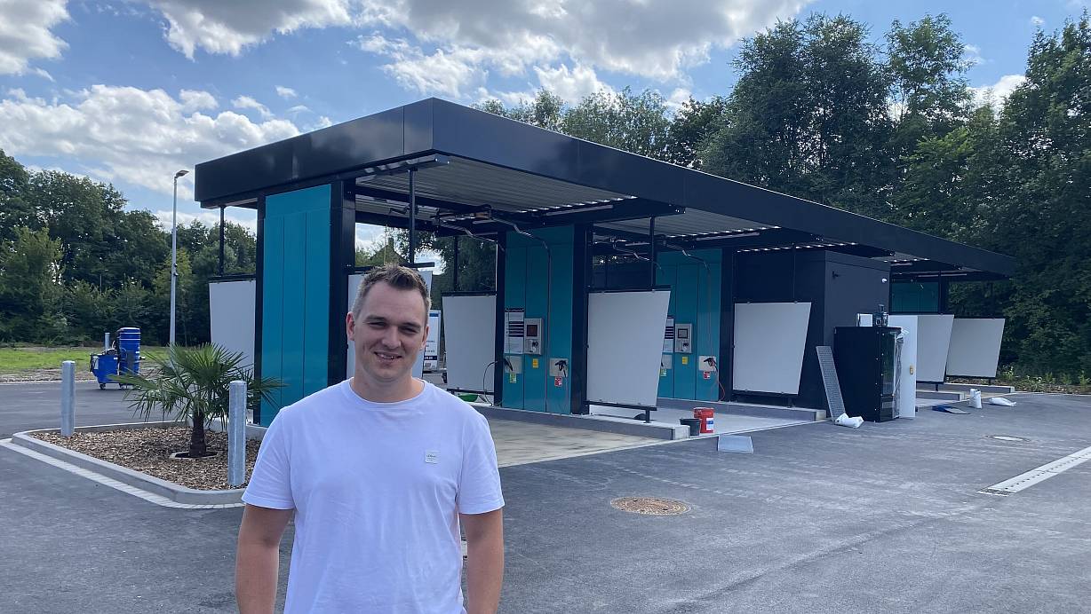 Gigawash-Betreiber Benjamin Meier auf dem Waschplatz am Becker Kreuz. | © Dirk Windmöller