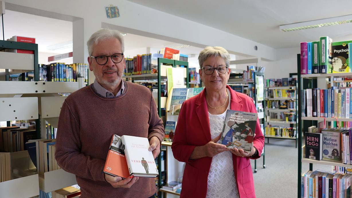 Thomas Rischmöller und Brigitte Förster vom Verein "Löhne liest" geben Ausblicke auf ein Vorlesefieber voller runder Geburtstage. | © Judith Gladow