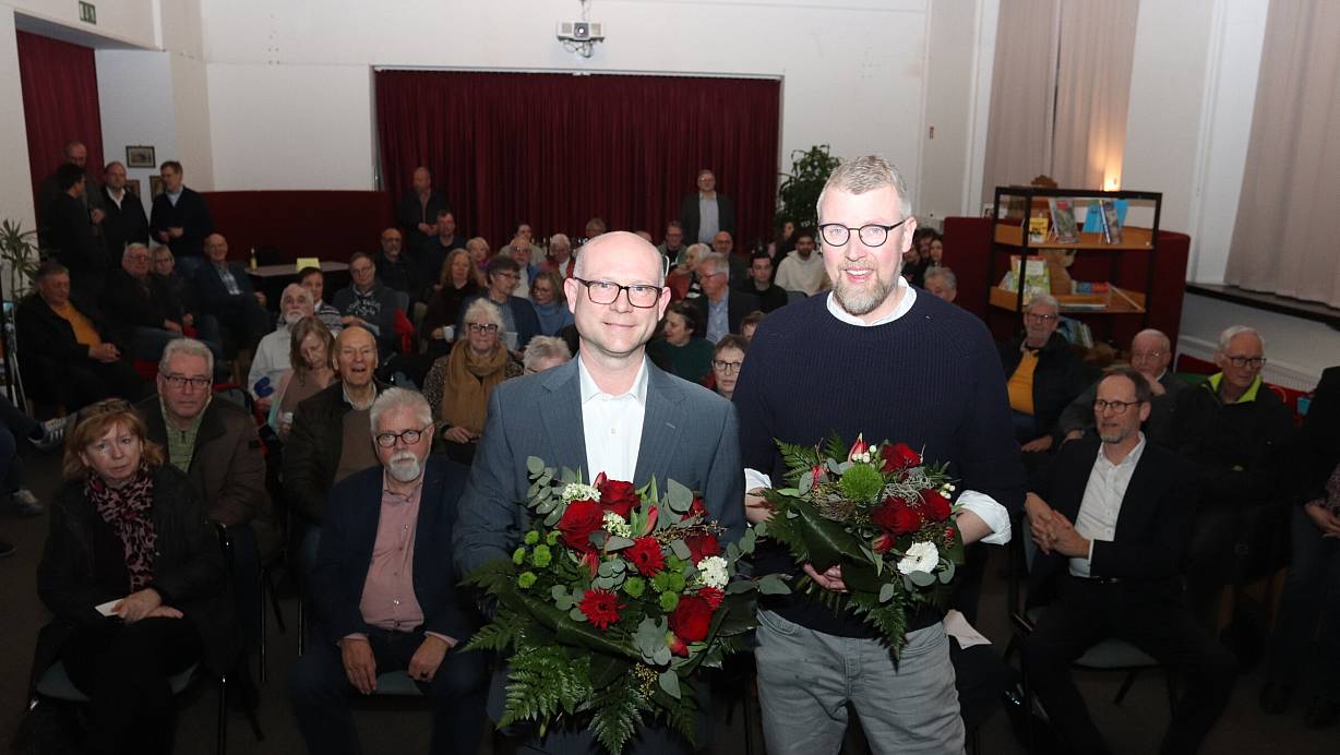 Christian Antl (l.) ist der Bürgermeisterkandidat der SPD. Er siegte bei der Wahl im Alten Wartesaal gegen Daniel Schneider. | © Dirk Windmöller