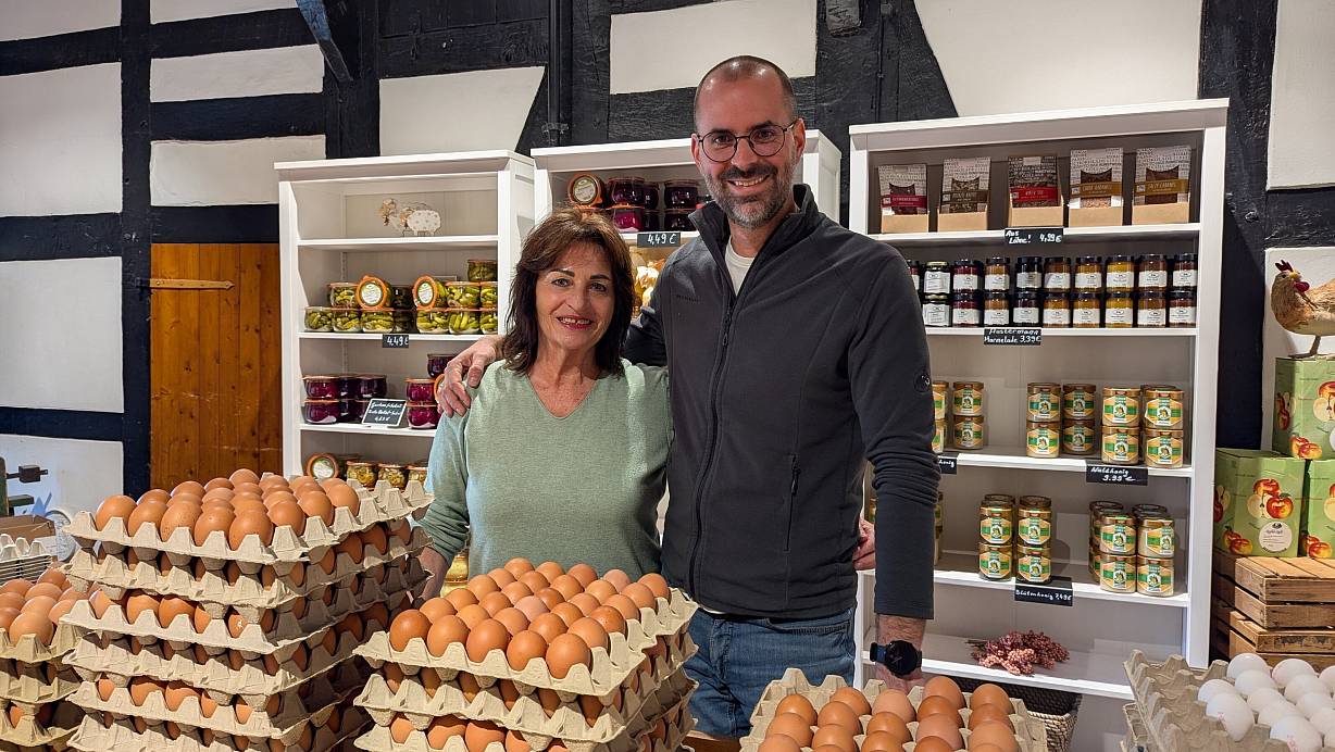 Edeltraut Böker und Christian Böker bieten in ihrem Hofladen nicht nur Eier an. | © Alex Wall