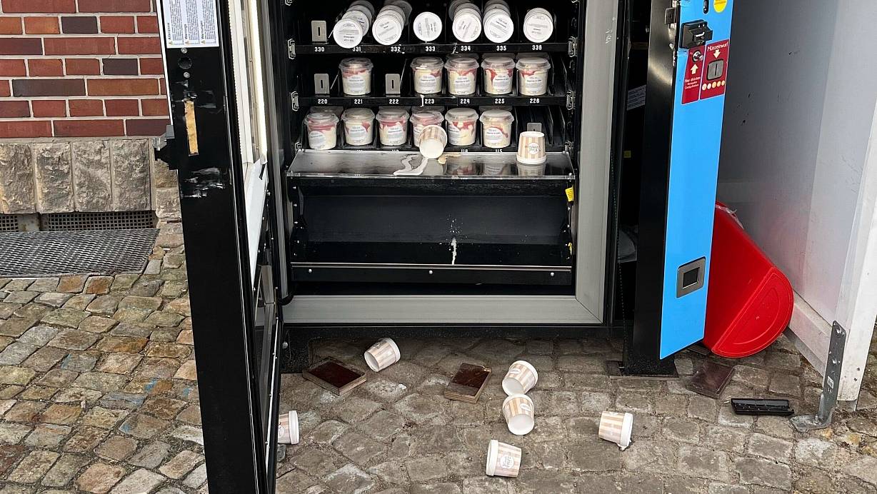 Zunächst hatte die Polizei Herford am Dienstagvormittag mitgeteilt, dass ein Zeuge am Montagmorgen bemerkt hatte, dass die Front des Eisautomaten an der Lübbecker Straße in Löhne aufgebrochen worden war. Demnach wurde die Front mittels eines Werkzeugs aufgehebelt, der Automat wurde dadurch erheblich beschädigt.