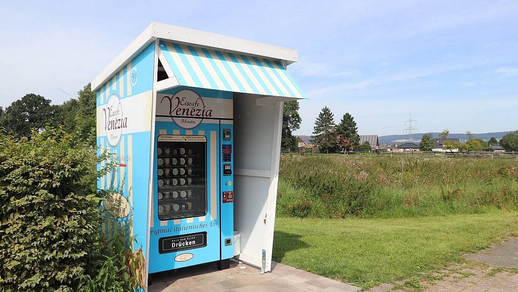 Das Eiscafé Venezia hat laut seiner Internetseite insgesamt elf Eisautomaten rund um Minden. Das Eis wird schockgefrostet und im Automaten bei mindestens minus 18 Grad gekühlt und ist deswegen (normalerweise) mindestens ein Jahr haltbar.