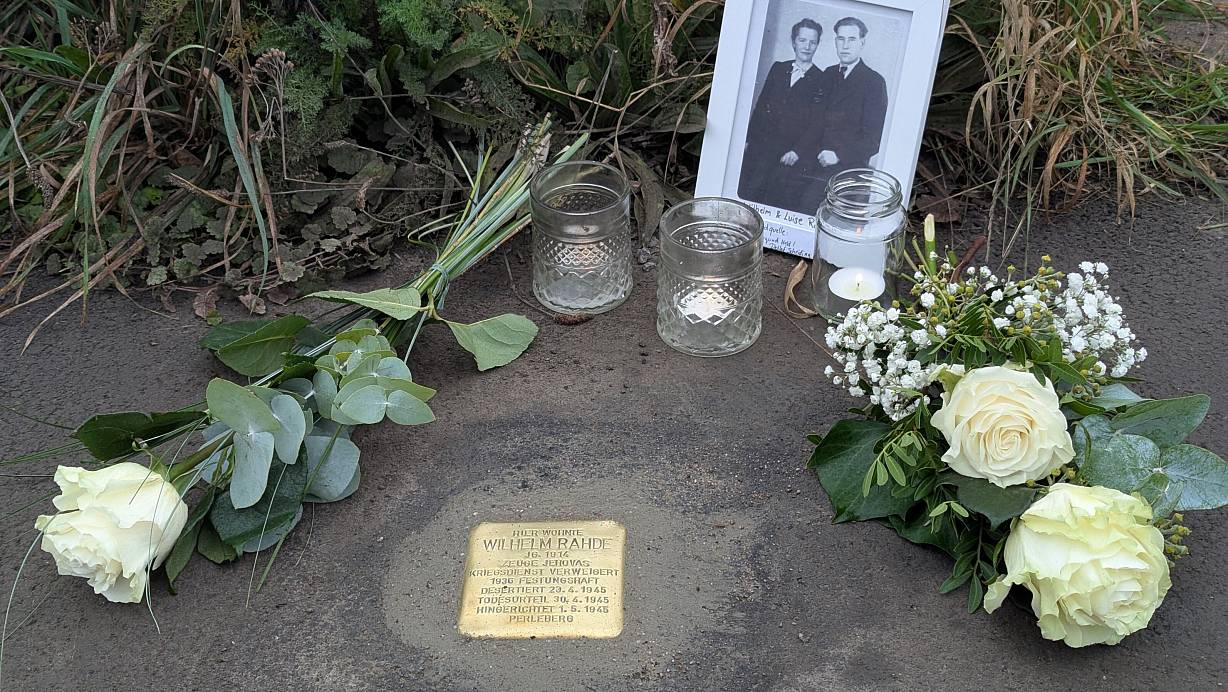 Löhne. Im November 2024 verschwand bei Glasfaserarbeiten ein Stolperstein am Rande der Straße „In den Ellern“ in Obernbeck. Der Stein zum Gedenken an August Friedrich Wilhelm Rahde befindet sich nun wieder fast genau da, wo er vorher war. „Vorher war er ein bisschen näher am Haus“, erklärt Stadtarchivar Mattis Mathis Nolte bei der Verlegung des Ersatzes.