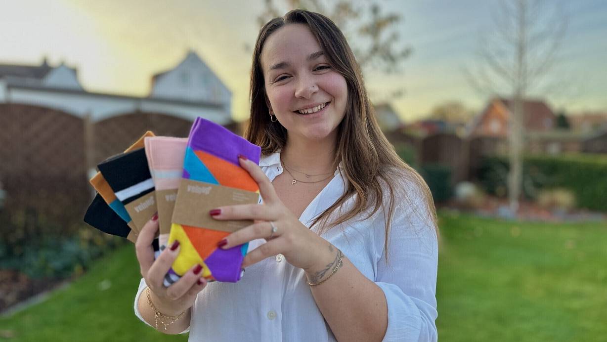 Selina Tacke aus Löhne bietet mit ihrem Start-Up "VEIN UP" bunte Kompressionstrümpfe an. | © Danielle Dörsing