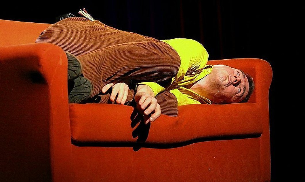 Nach den Höhepunkten aus seinem Tagebuch oder seinem Gedichtband, fällt König immer wieder in einen Sekundenschlaf. "Den habe ich manchmal stundenlang", sagt König und versucht es sich auf dem viel zu kleinen Sofa gemütlich zu machen.