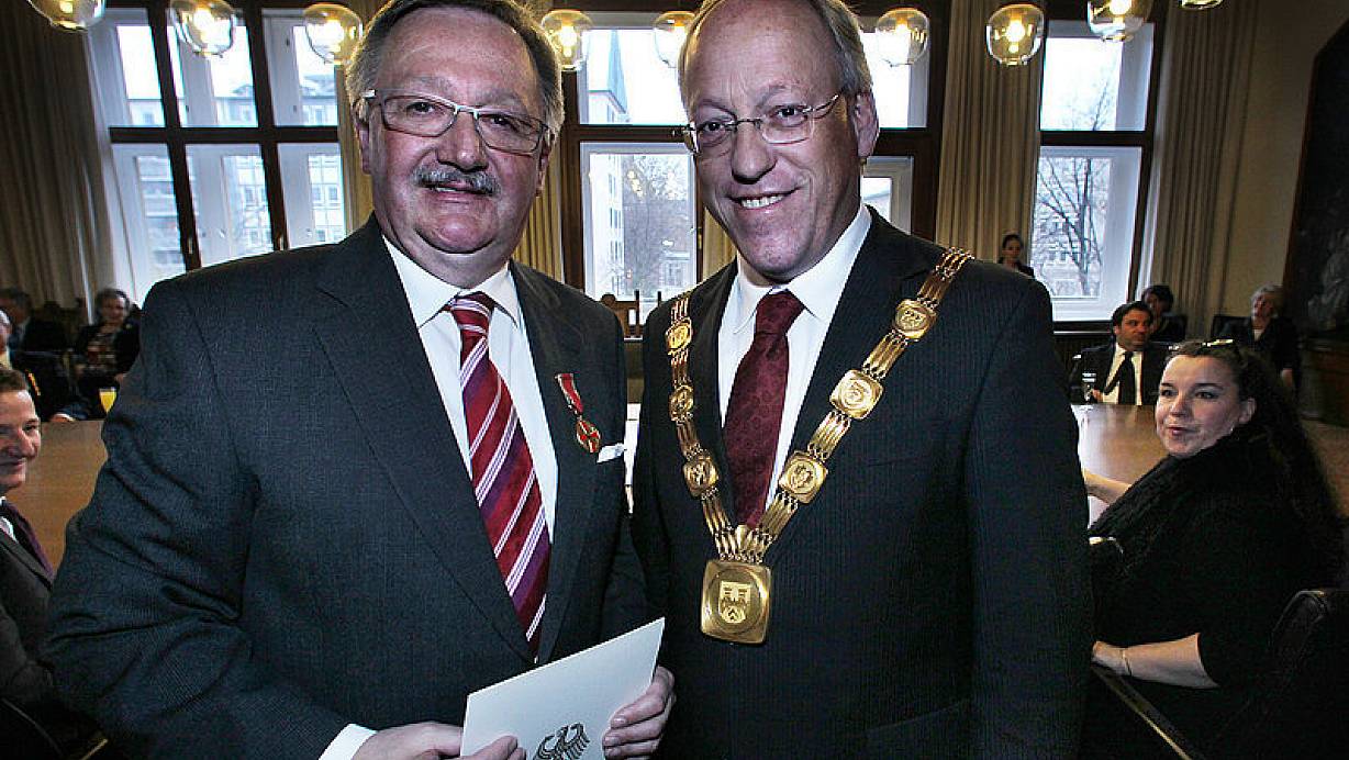 Karl-Uwe Eggert (l.) und Bielefelds Oberbürgermeister Pit Clausen. | © FOTO: SARAH JONEK