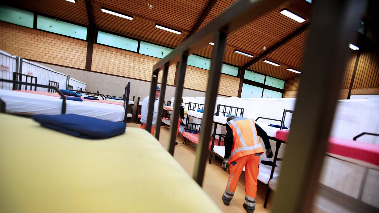 Beengte Verhältnisse: In der Turnhalle der Jugendherberge in Rödinghausen stehen die Doppelstockbetten für die Flüchtlinge dicht an dicht. | © Gerald Dunkel