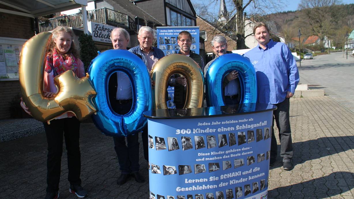 Eine stolze Summe: 4.000 Euro nahmen Anja Gehlken (l.) und Markus Gehlken (r.) von Karl-Hermann Hobel (Vizepräsident Lions-Club), Volker Niestrat (Pressebeauftragter Lions-Club), Otto-Karl Pollner (Lions-Sekretär) und Andreas Schimke (Präsident Lions-Club) entgegen. | © Björn Kenter