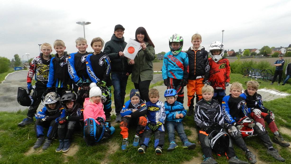 Der "Rote Punkt" ist da: Die Mitglieder des Race Hawks BMX-Club freuen sich über die Baugenehmigung der Stadt Melle | © Thorsten Mailänder